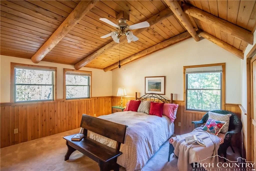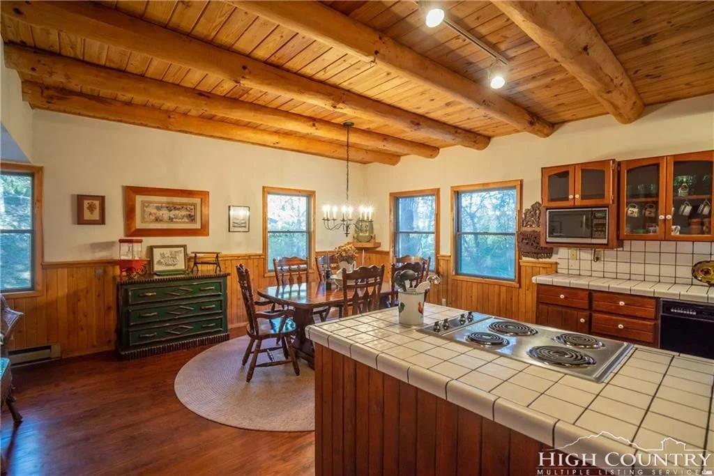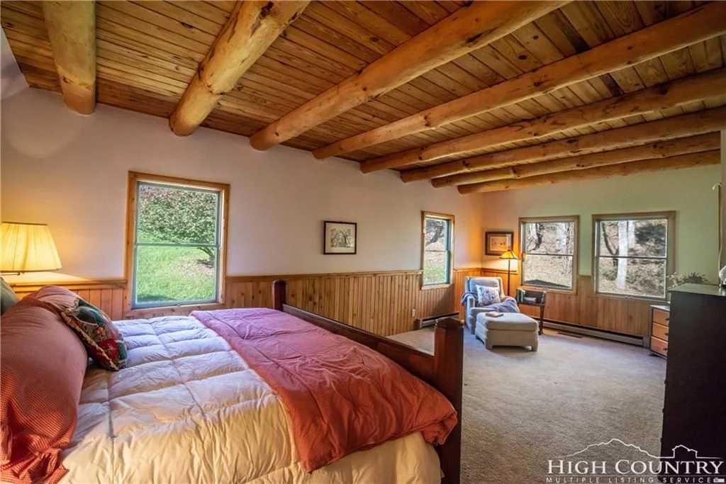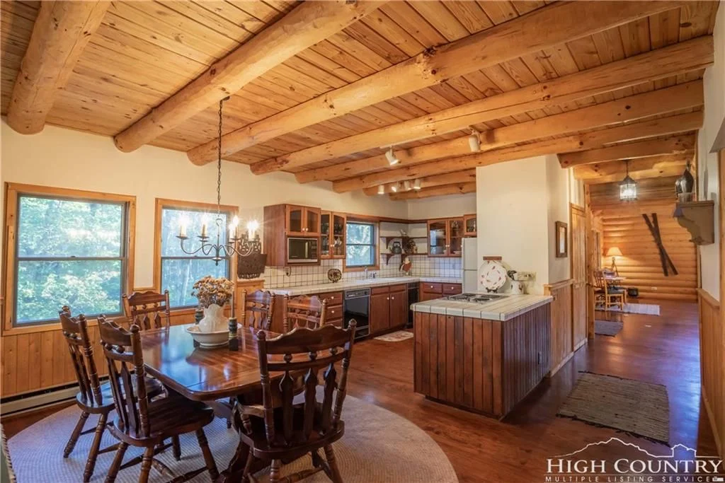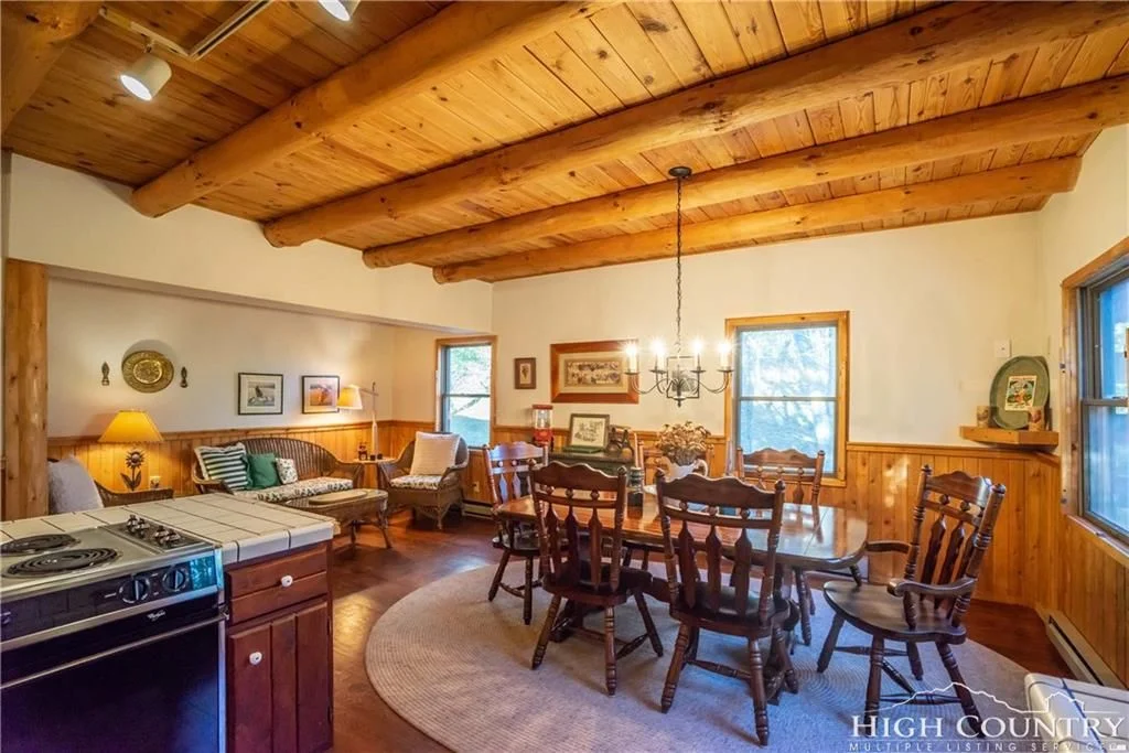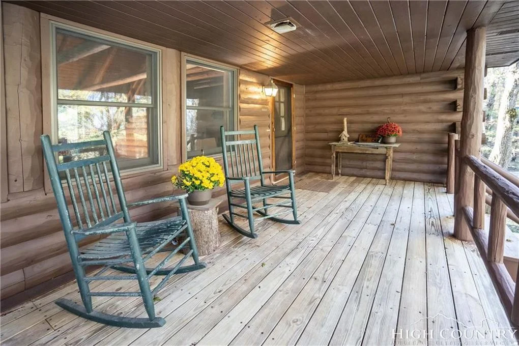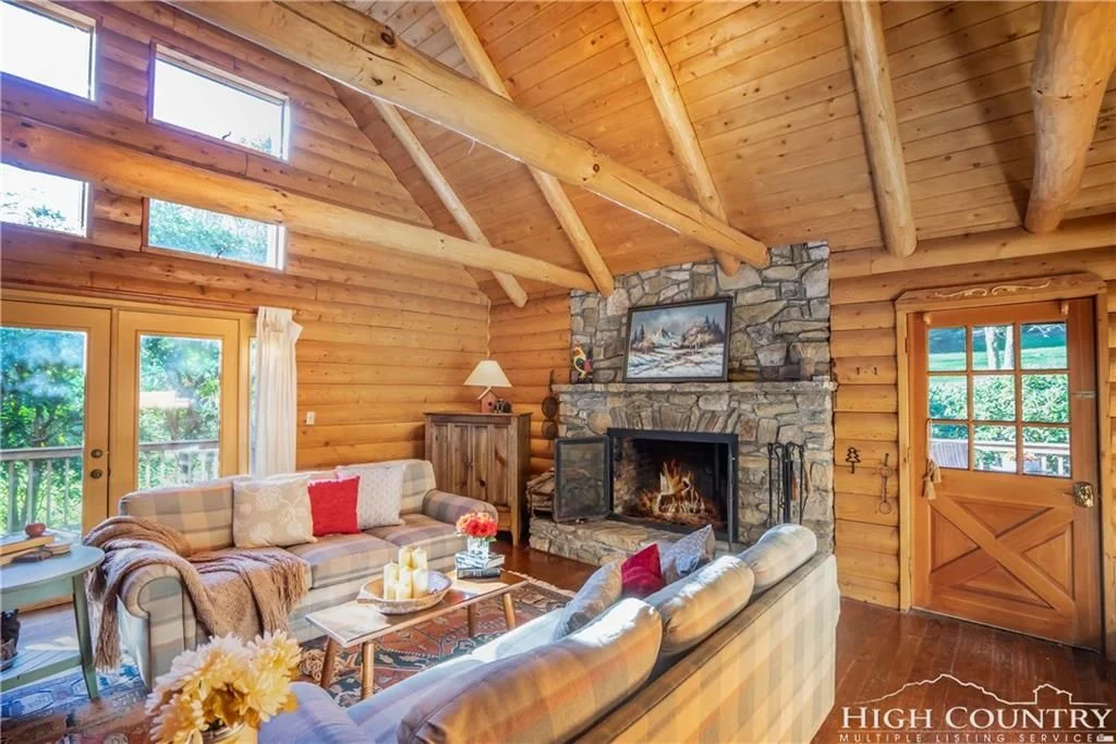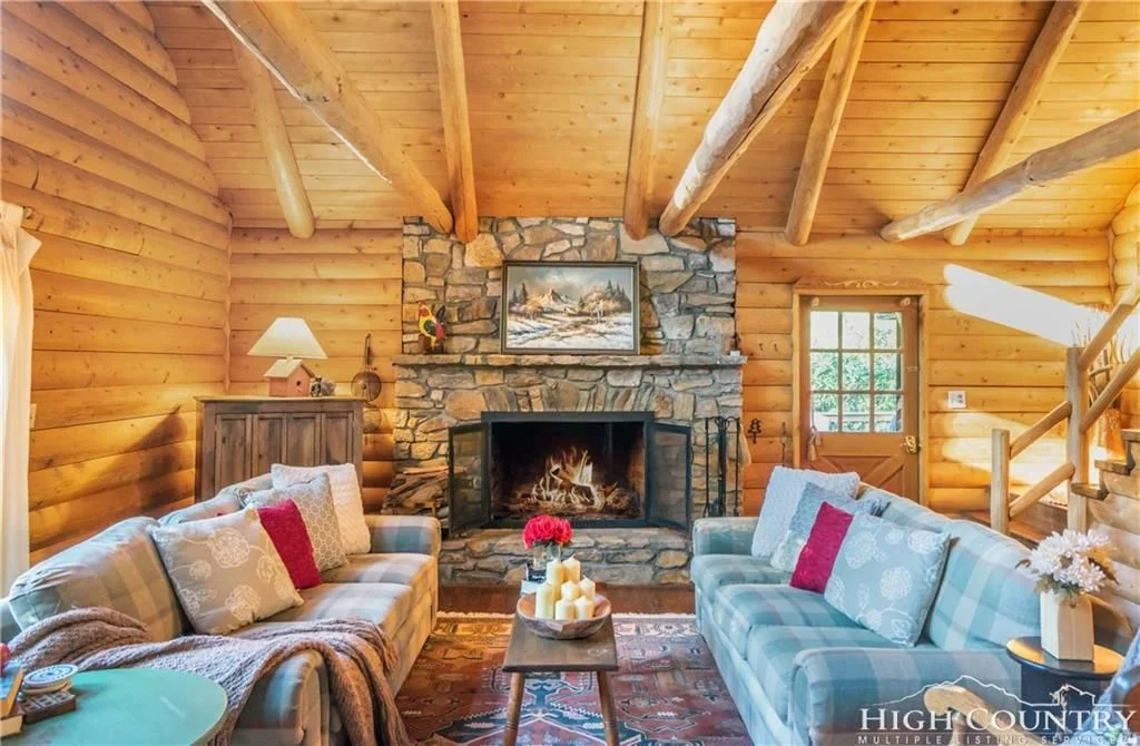 I love browsing real estate listings. I am constantly on the lookout for a bigger house for our family (there are six of us in about 1400 square feet), but I also just enjoy perusing anything related to architecture and design. Recently, I came across this great log cabin on Rambling Road in Blowing Rock, NC, near the local ski slopes (Appalachian Ski Mountain). I loved its charm and natural light! The views out the windows are so peaceful. I thought it’d be fun to do a blog post where I share how I’d make over a space that’s for sale. It will give you a chance to see the potential that I see in a property. And if you become the buyer for this home and are interested in my help as you design the home, contact me here through the Canvas & Light Interiors website! I’d love to be a part of designing this home with you!