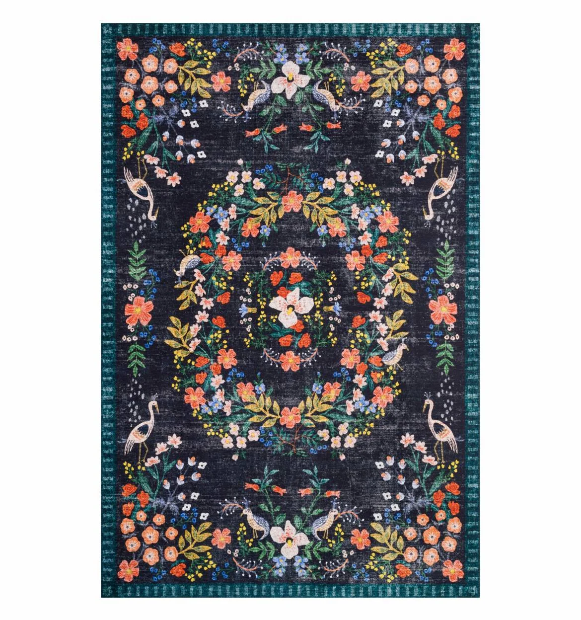 I’d then start designing the space around this gorgeous rug by Rifle Paper Co. :