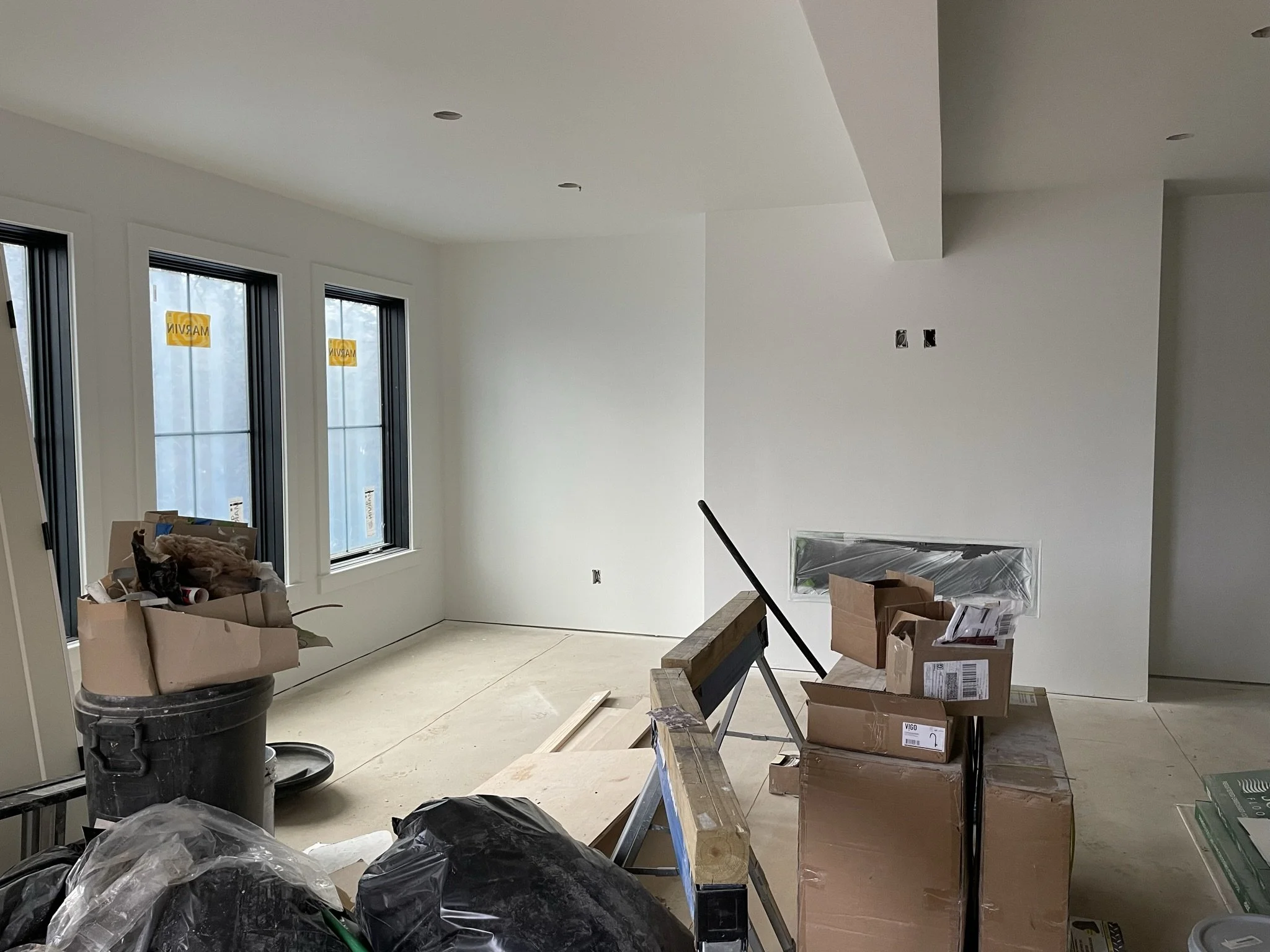 (If you’re interested in seeing other moodboards I’ve created for various projects, click here to check them out!) Here are some before, after, and progress shots of the living room’s fireplace wall: