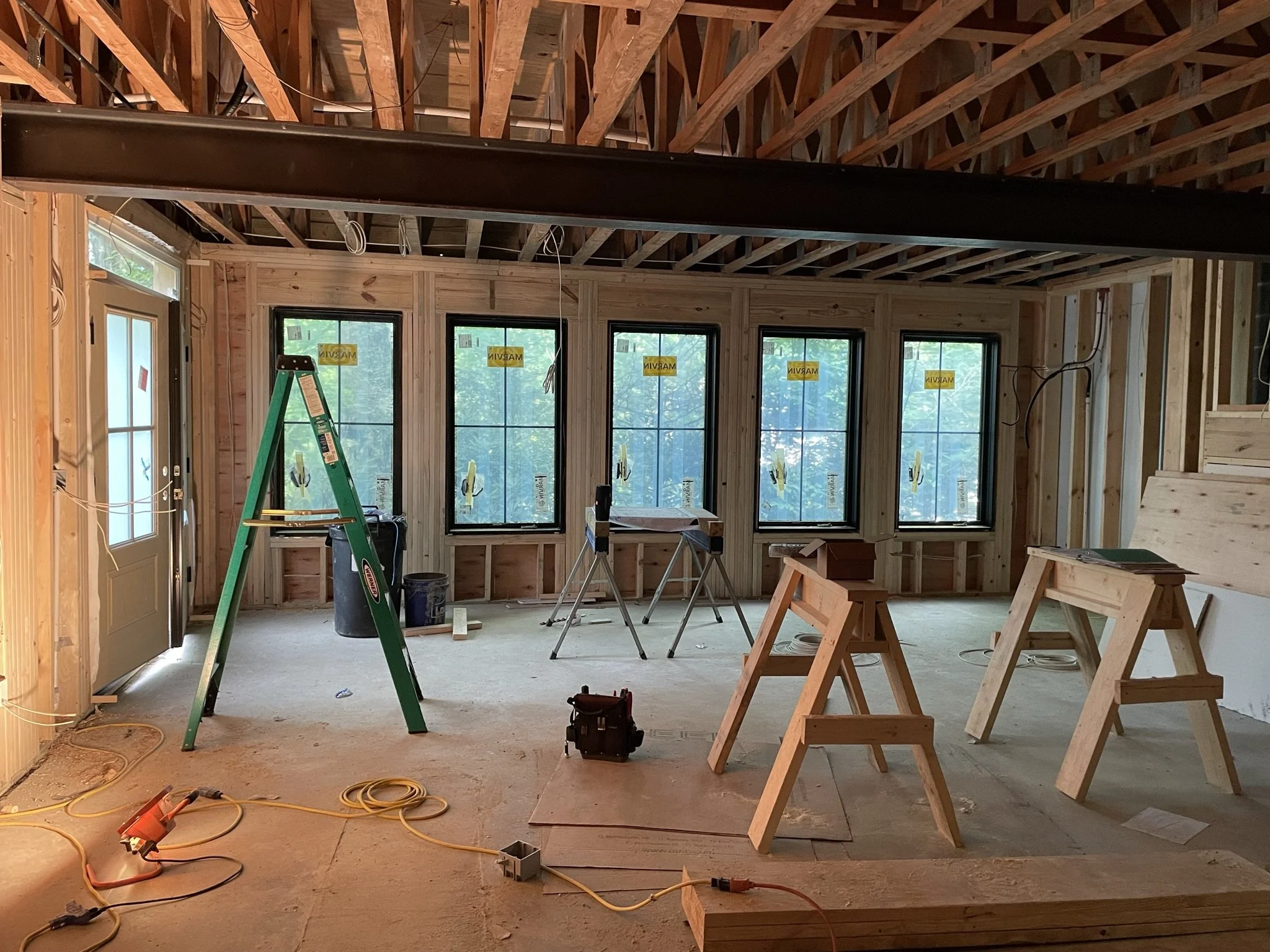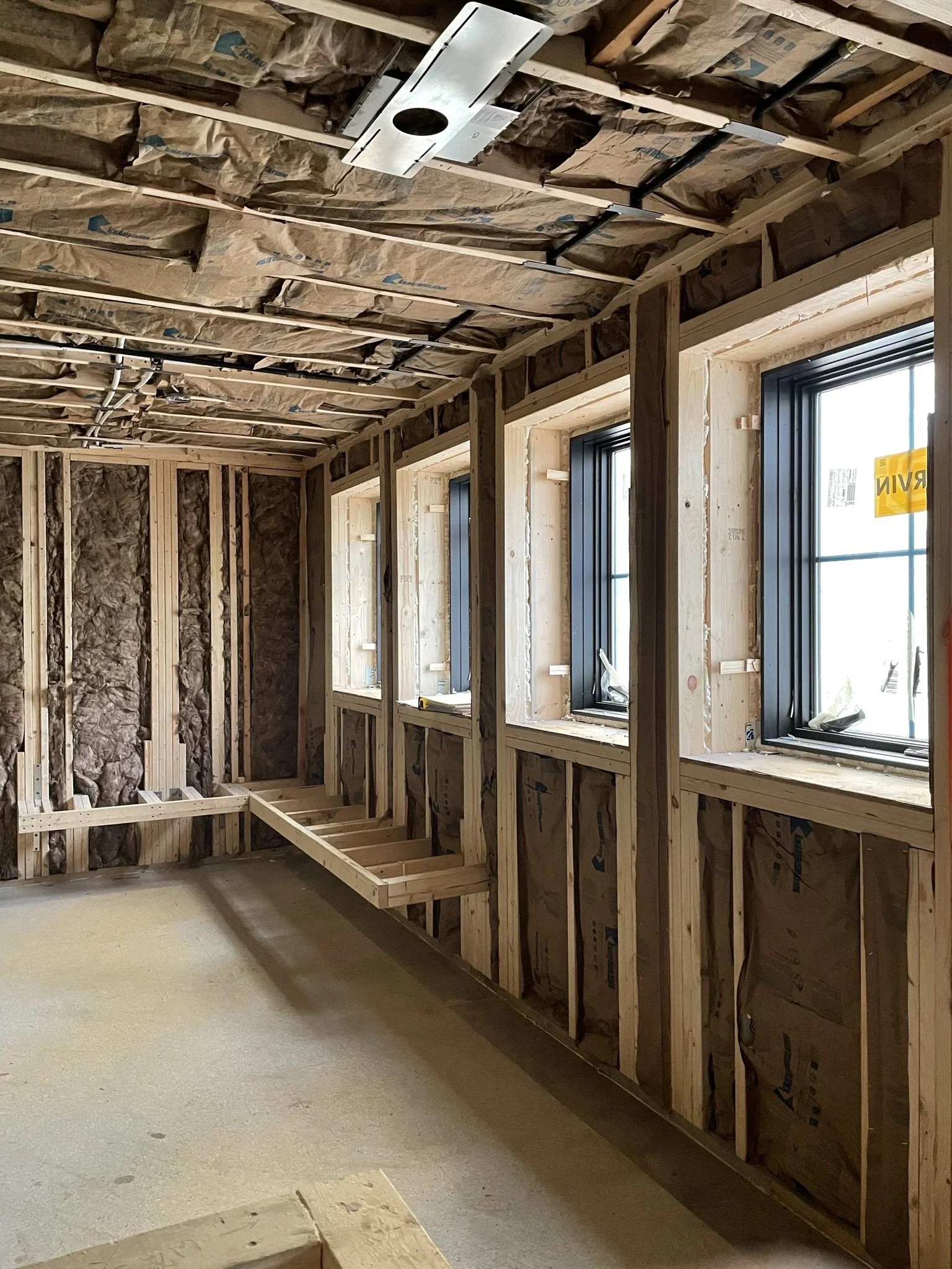 Through that one window are gorgeous forest views that I knew we needed to show off. I wanted nature to be the primary feature of this Airbnb so that when guests relaxed in this living room, they could take a seat and just exhale, enjoying the view of the outdoors. I designed a row of tall windows, wanting to bring in as much natural light as possible: